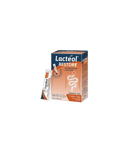 Lactéol® Restore contains milk-based products and may contain traces of soy, wheat and barley. It should not be used by anyone suffering from lactose intolerance or milk protein allergy.